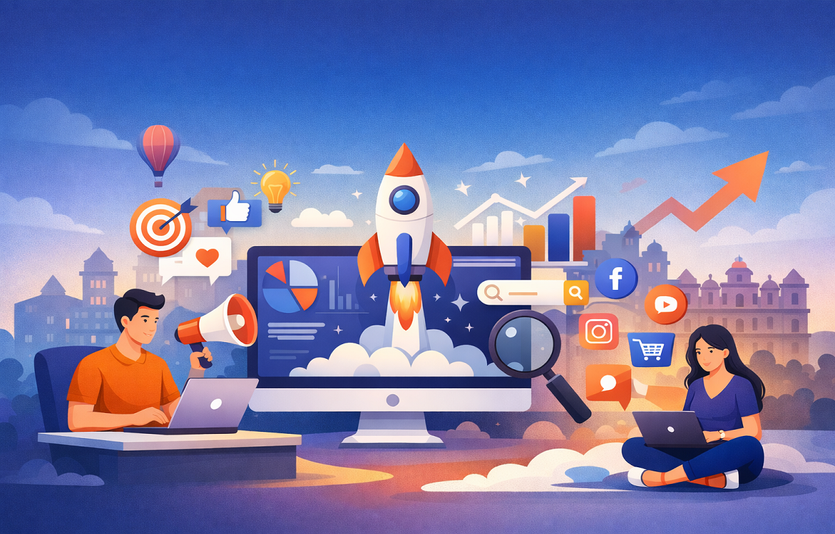 Indore is one of the fastest-growing cities in India and the business environment there is very successful. Playing on the ever-growing digital ecosystem, companies in Indore need to change to remain competitive. The conventional way of marketing is no longer sufficient in an online world. With the increasing number of consumers using the internet as a means of searching products and services, a successful digital marketing strategy is necessary to survive.